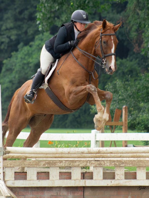 Gem has been ridden by a pro in 3ft classes, and shown by a Junior at 2’6-3’ height in equitation and hunters.